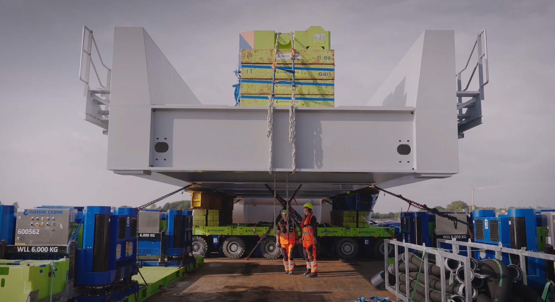 Efter halvandet års forberedelser skulle det 31 meter lange stålklapfag monteres til klapmaskineriet. En opgave, der krævede ekstrem præcision og tæt samarbejde.
