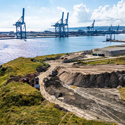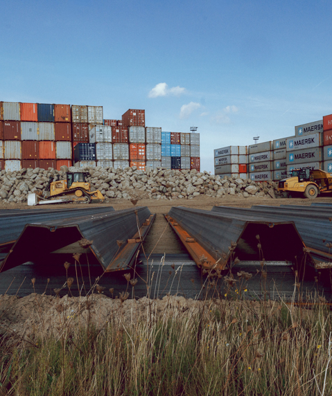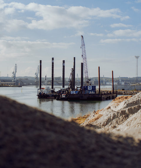 På havnen i Aarhus, hvor alt er i storskala og mågeskrig er normal baggrundsmusik, arbejder vores vandbyggere lige nu på at forlænge den såkaldte Omniterminal med en ny kaj på 430 meter på 14 meters vanddybde. Kajforlængelsen betyder, at der i fremtiden er mulighed for ikke bare én, men to containerterminaler på havnen.